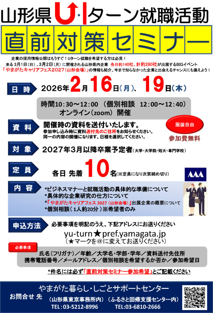 【山形県UIターン就職活動直前対策セミナー開催!】